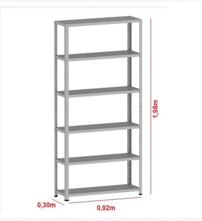 Estante de Aço com 06 Bandejas 30cm (22/18) – 1,98×0,92×0,30m – W3 – Cinza
